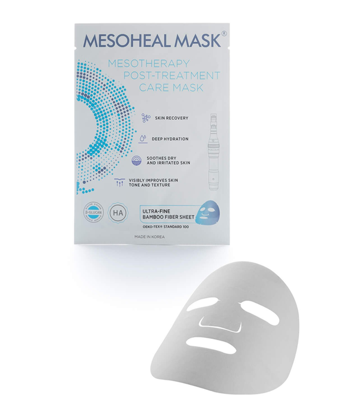 The MESOHEAL® Post-Treatment Care Mask is an ultra-fine microfiber sheet mask enriched with Vitamin K, β-glucan, Panthenol, Allantoin, and Sodium Hyaluronate. Specially formulated to deeply hydrate, calm, and repair dry or irritated skin, this mask provides the ultimate aftercare following aesthetic treatments, restoring comfort and balance to the skin.